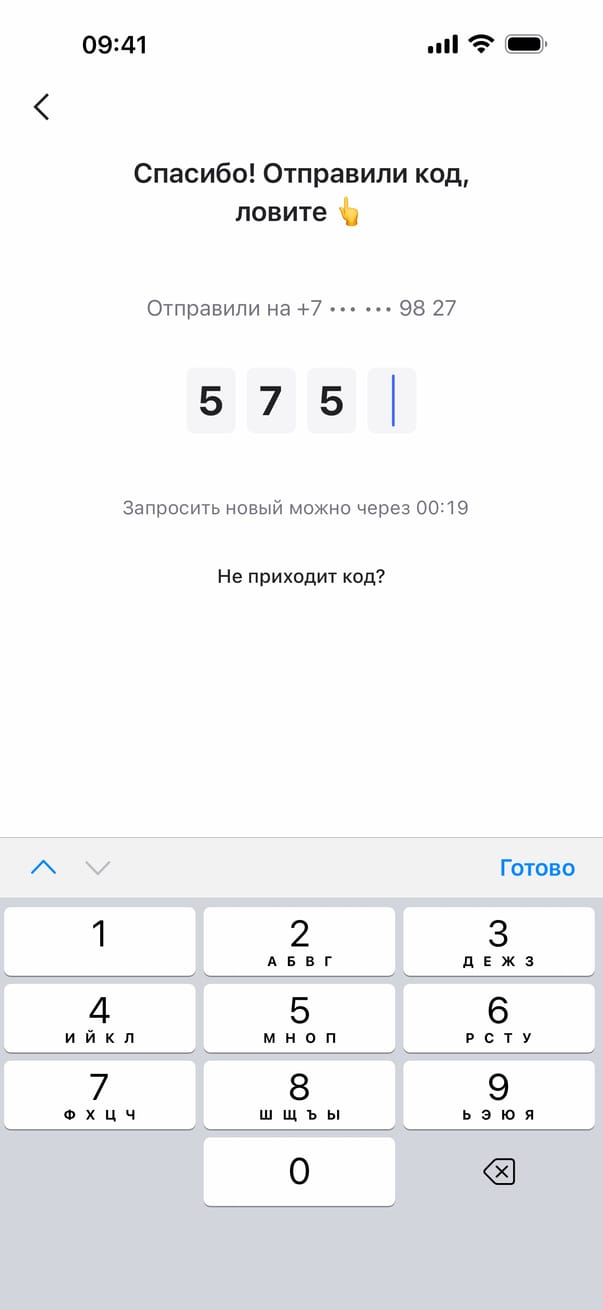Повторный запрос СМС-кода