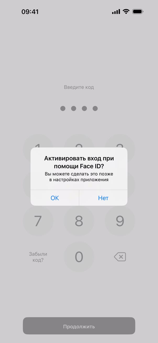 Повторный вход в приложение