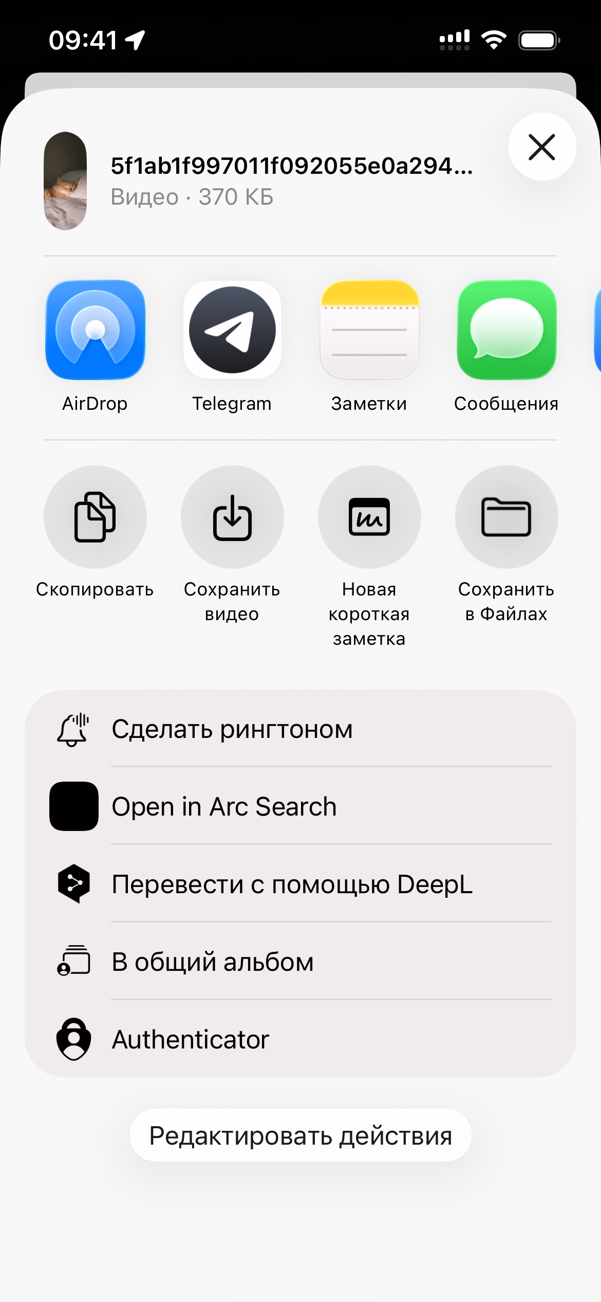 Действия с сообщением