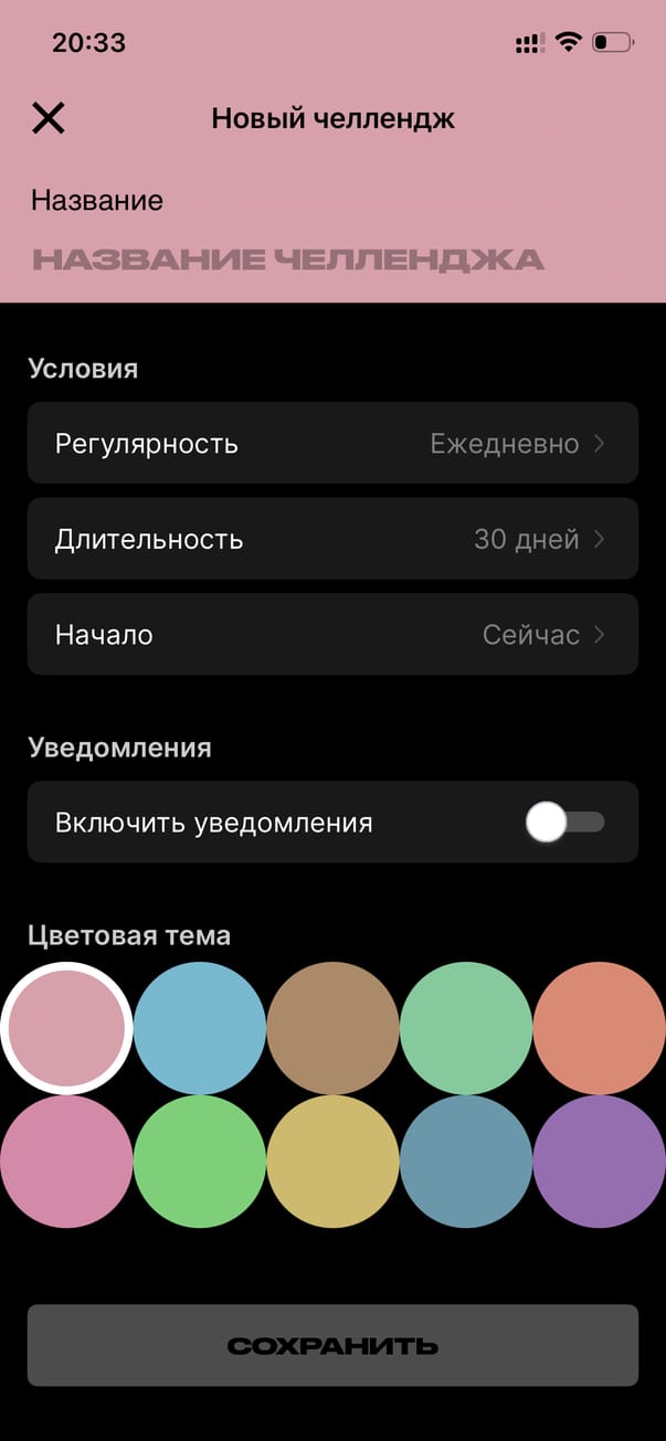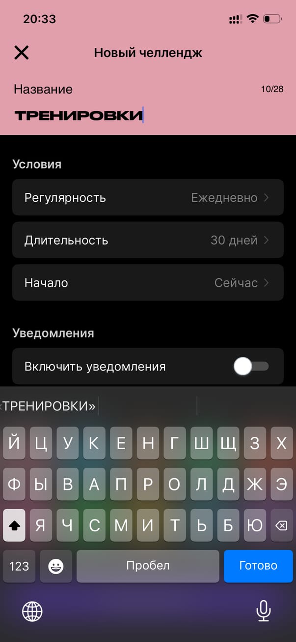 Создать свой челлендж
