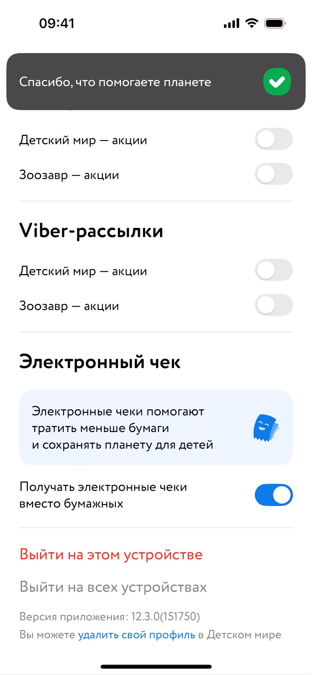 Выход из аккаунта