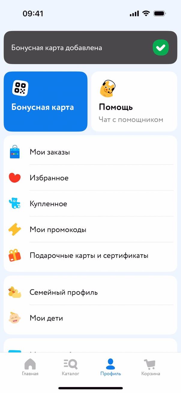Добавление семейной бонусной карты