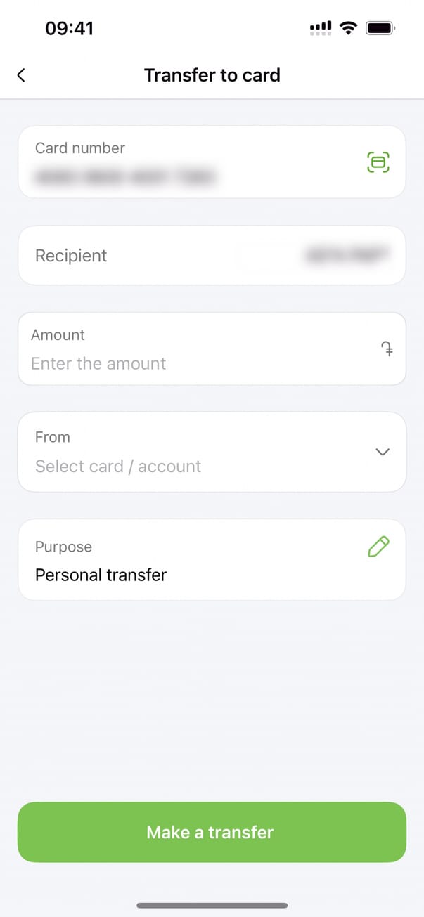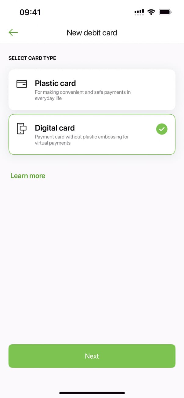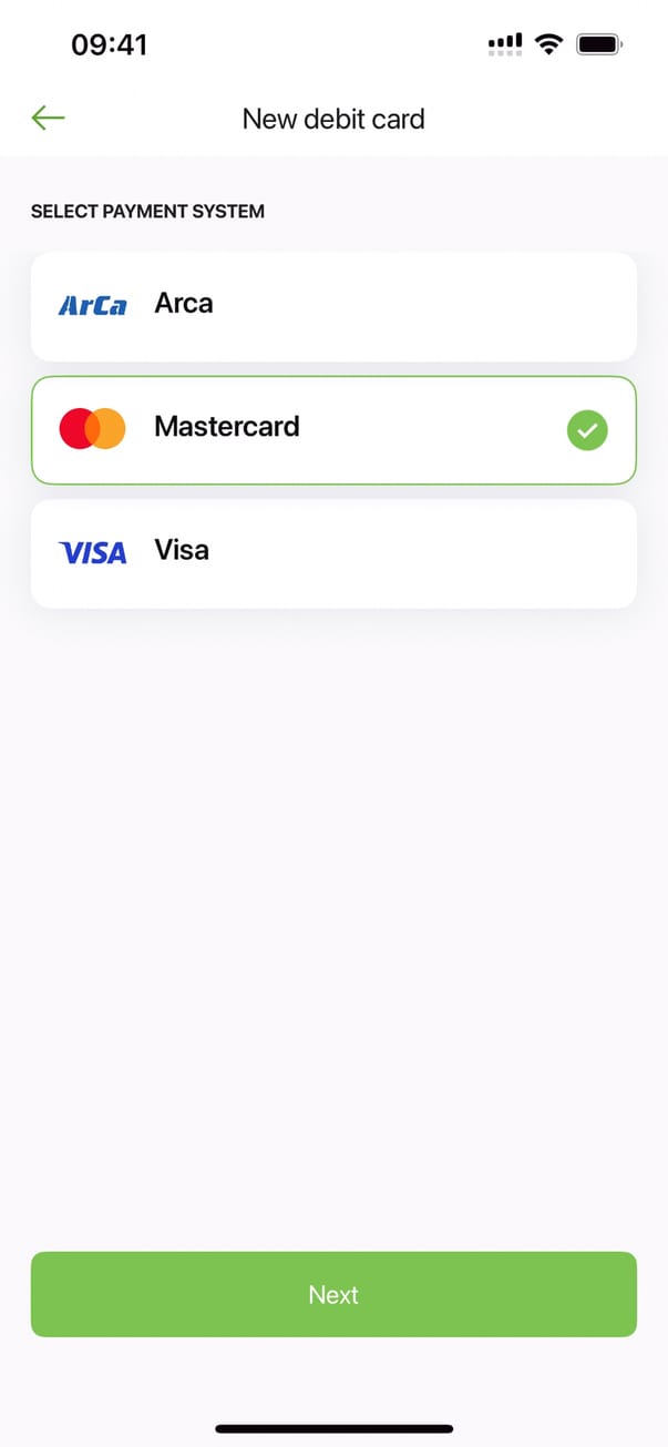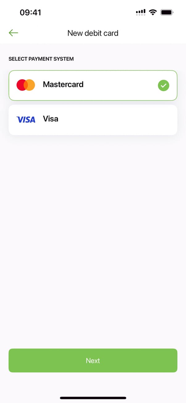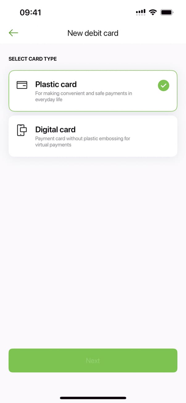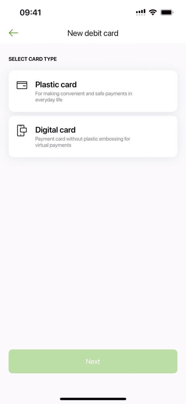 Новая карта (дебетовая карта)