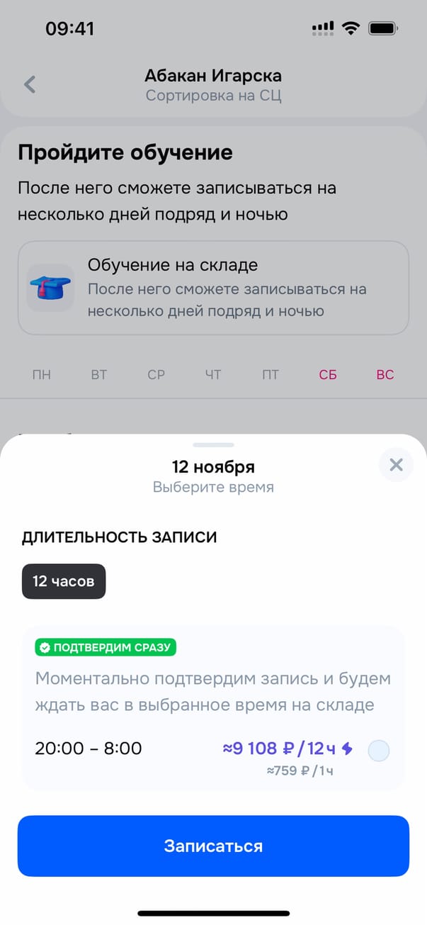 Запись на смену