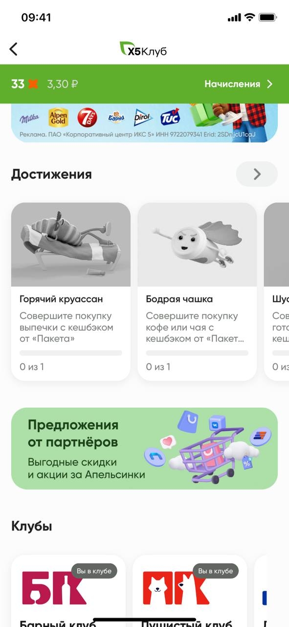 Страница партнёрами в мини-приложении карты