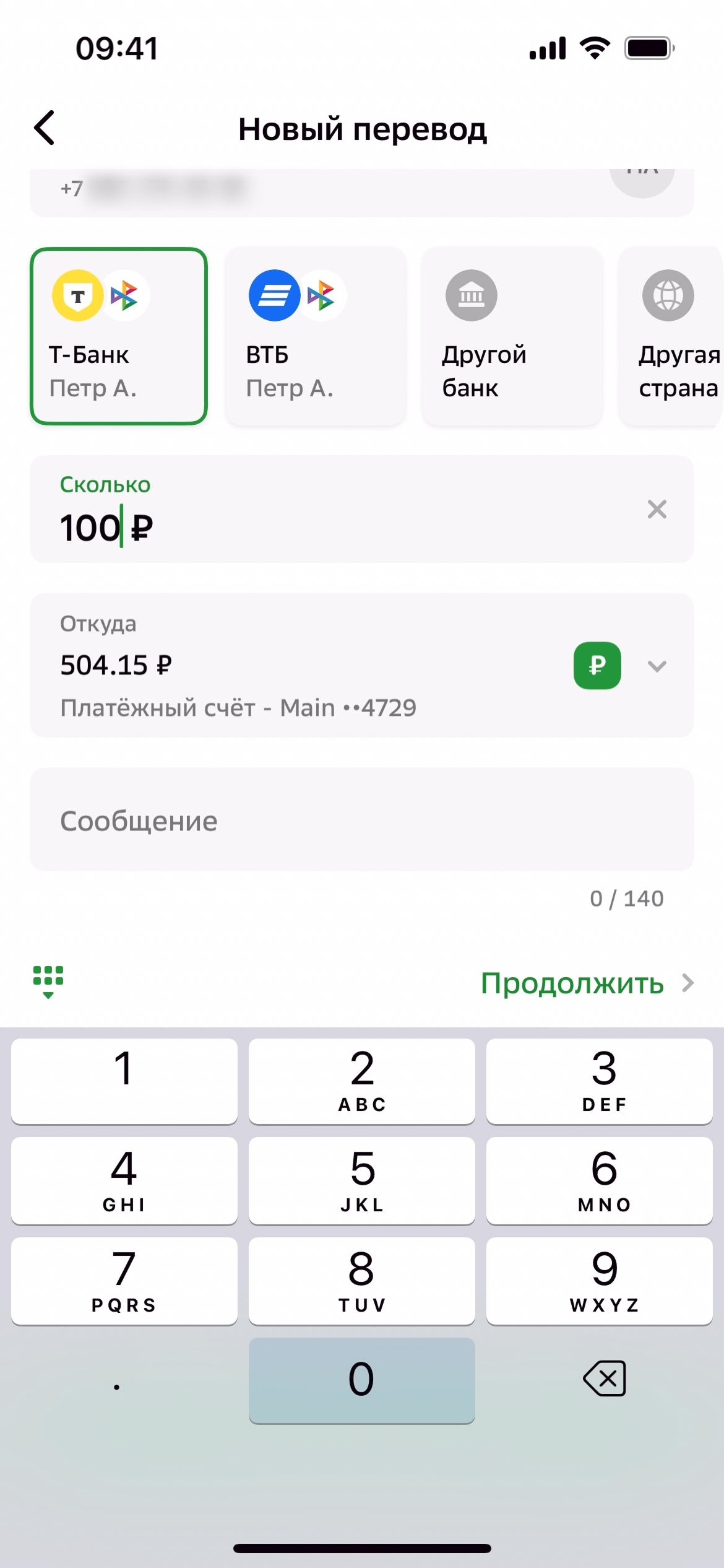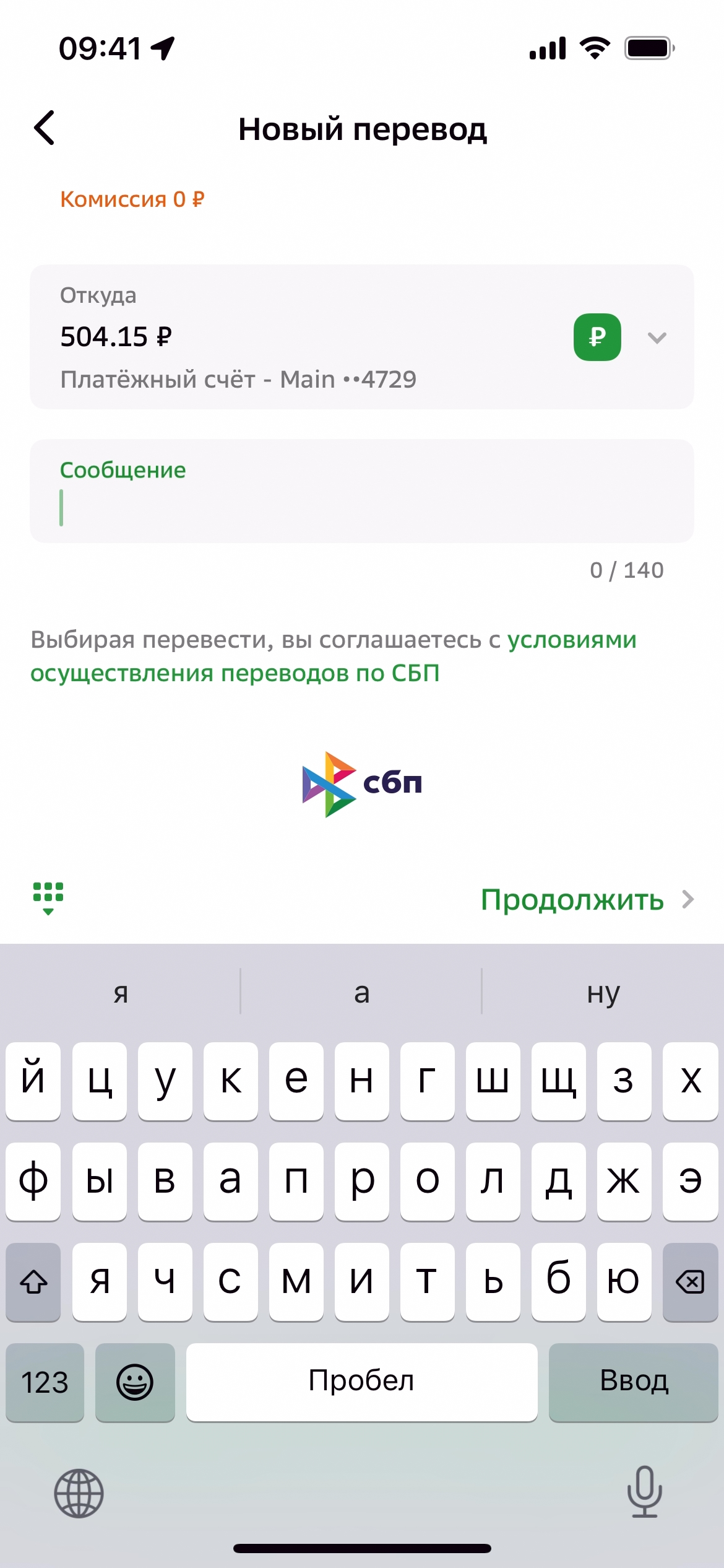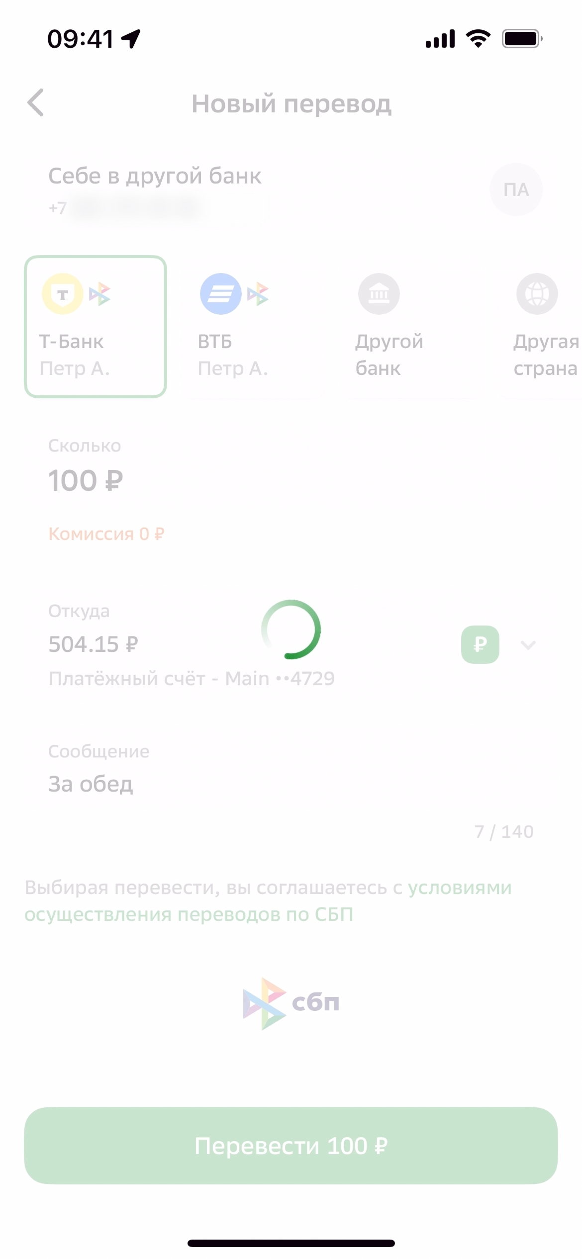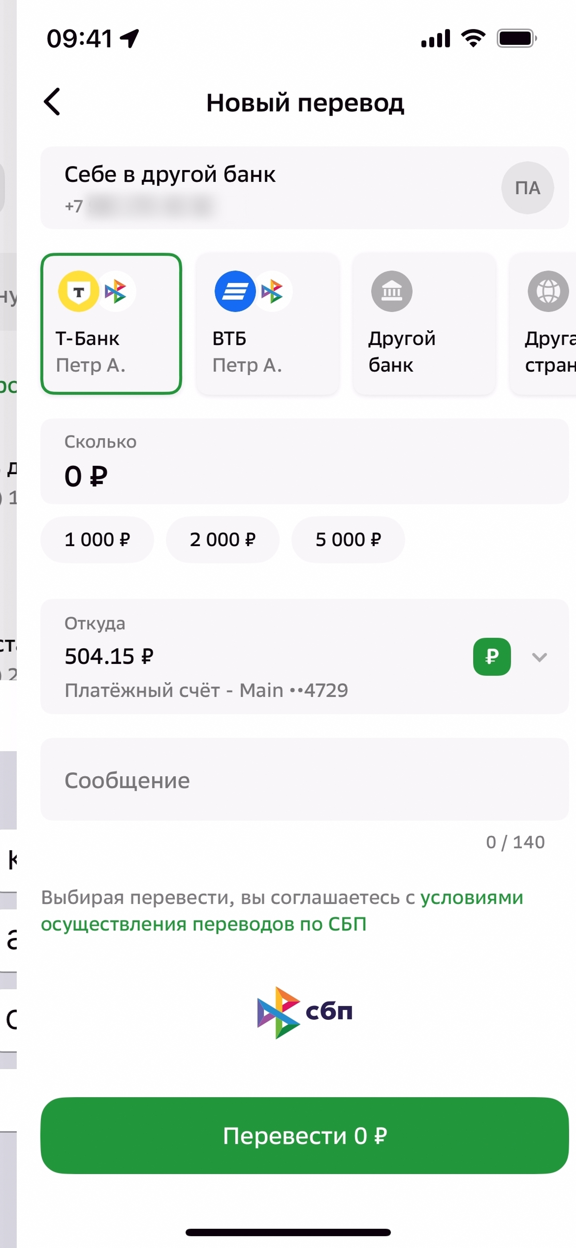 Перевести на Сбер или другой банк