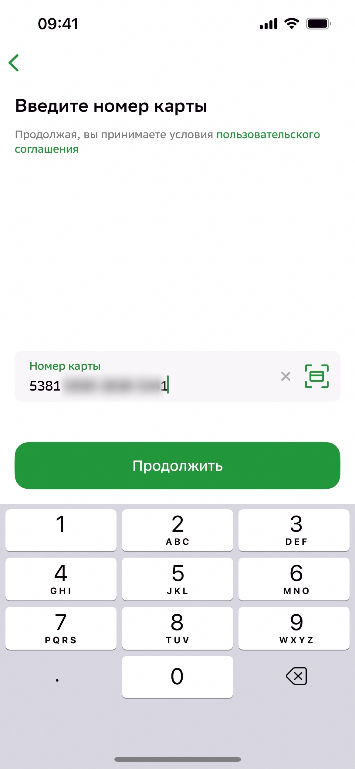 Войти по номеру карты