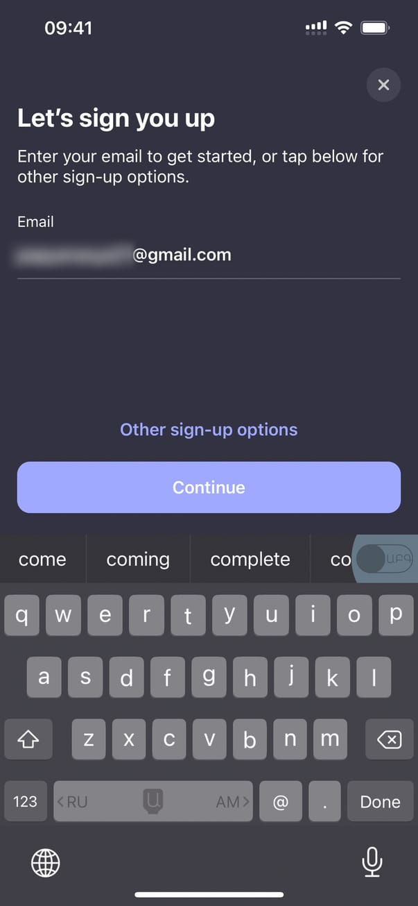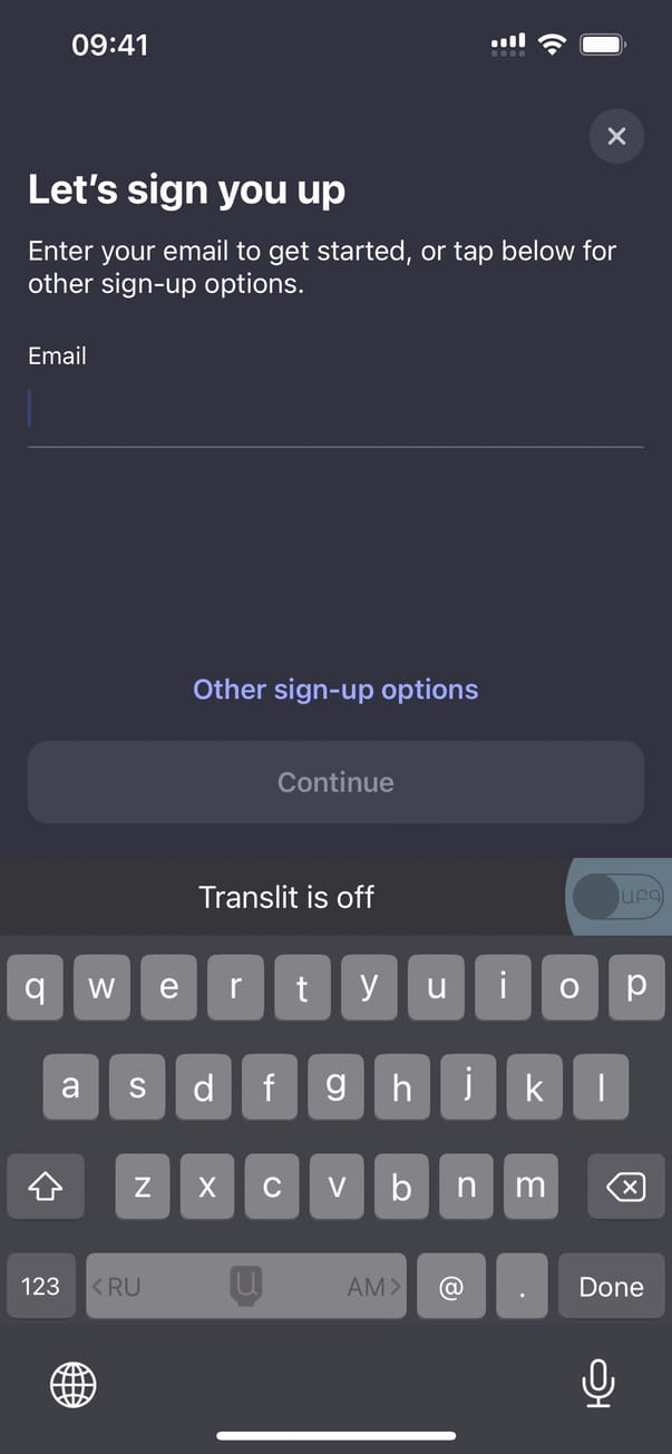 Продолжить с Email