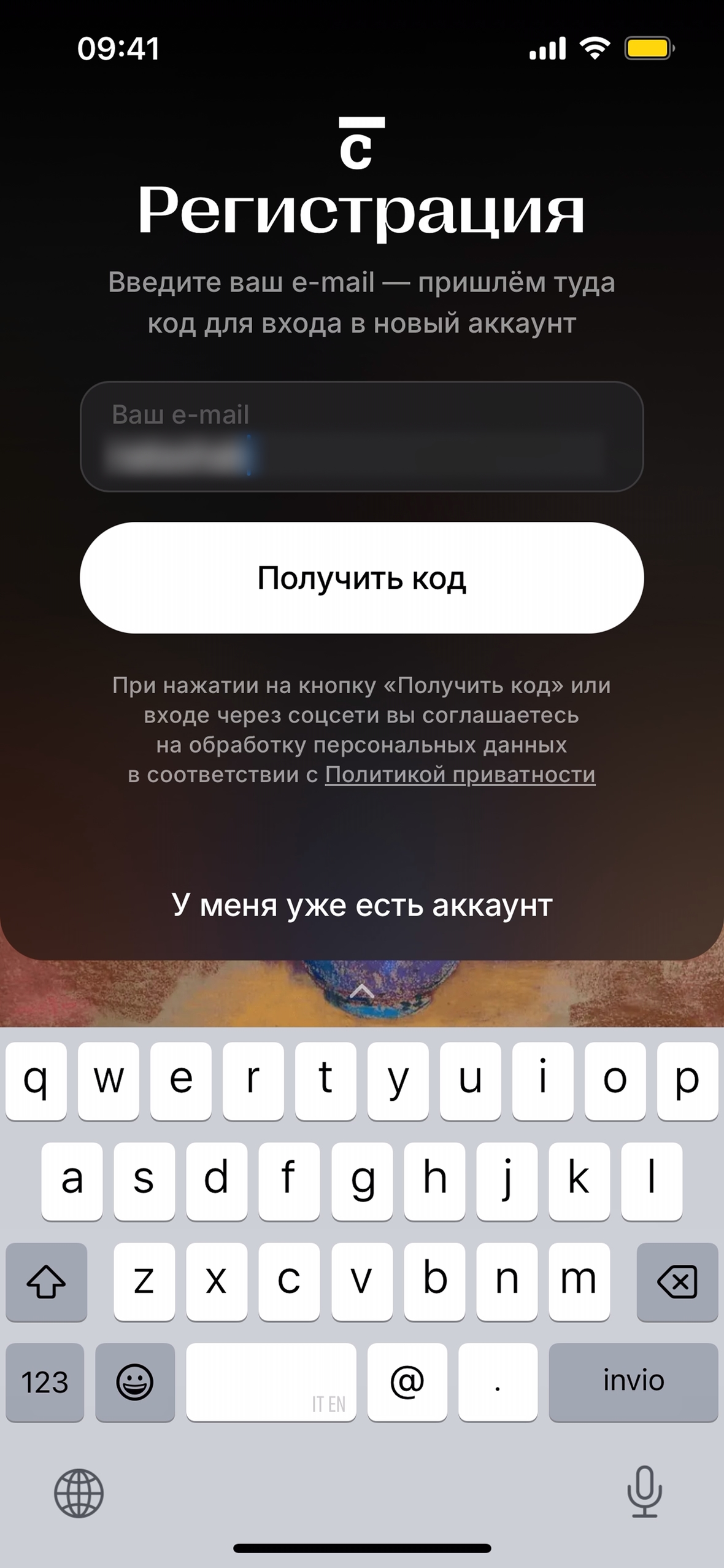 Продолжить с Email