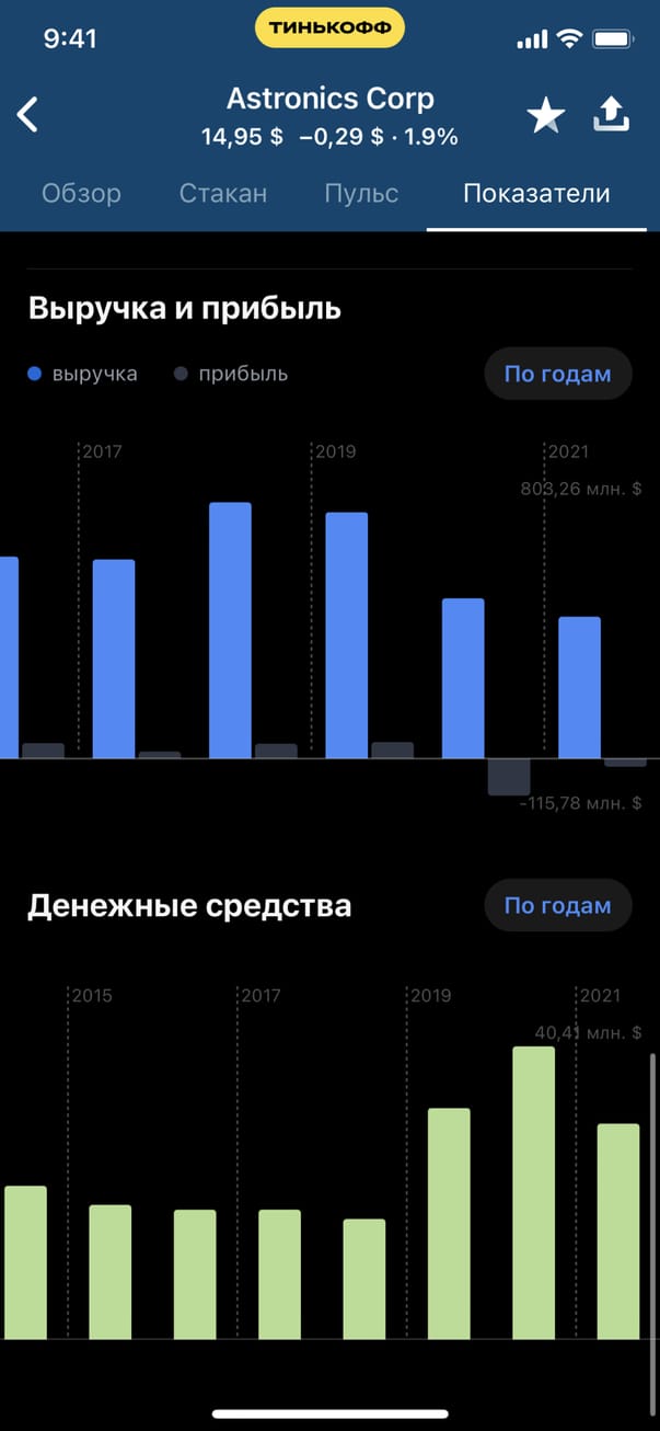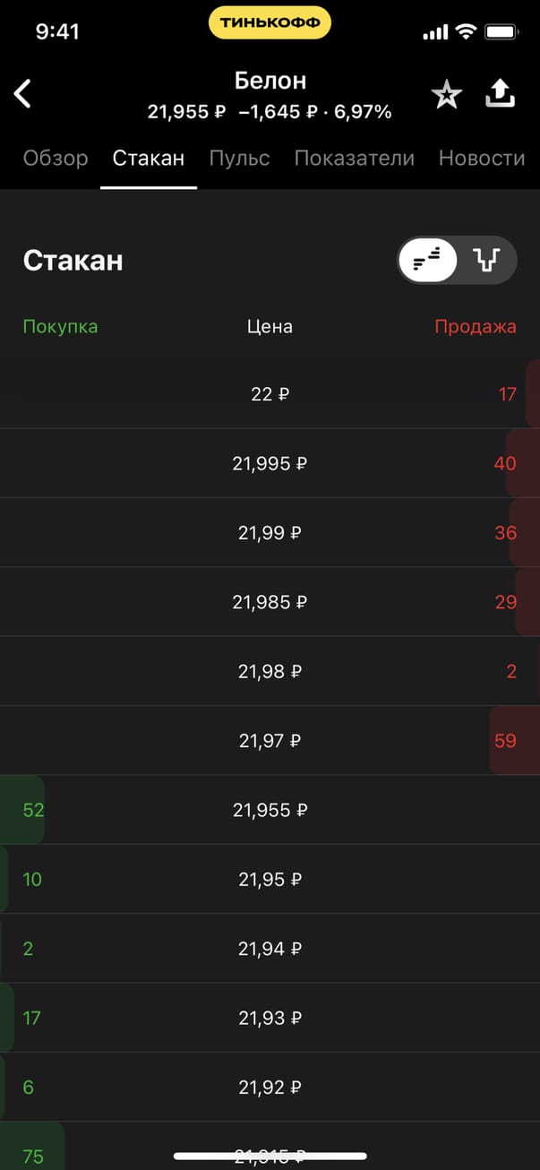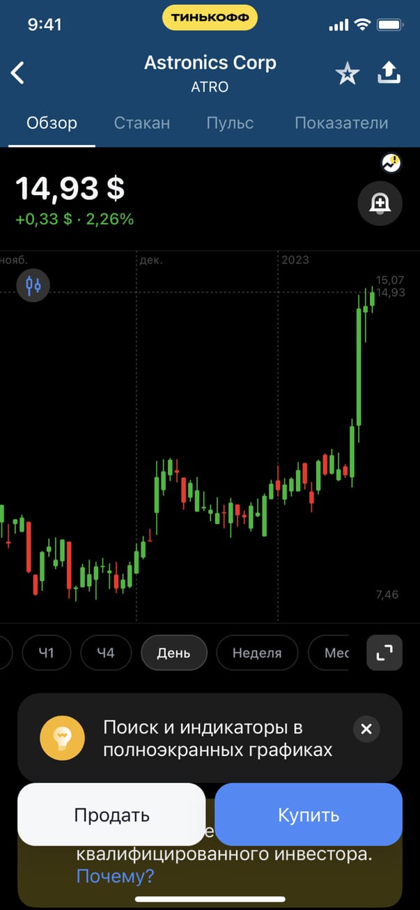 Обзор экрана акции