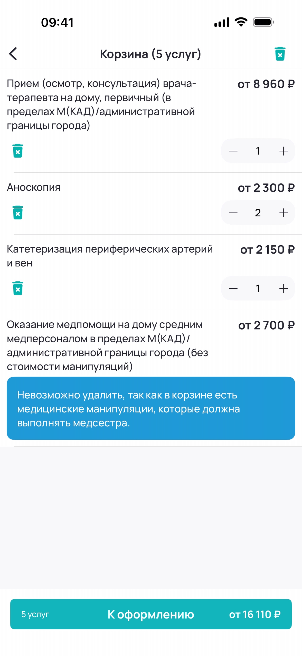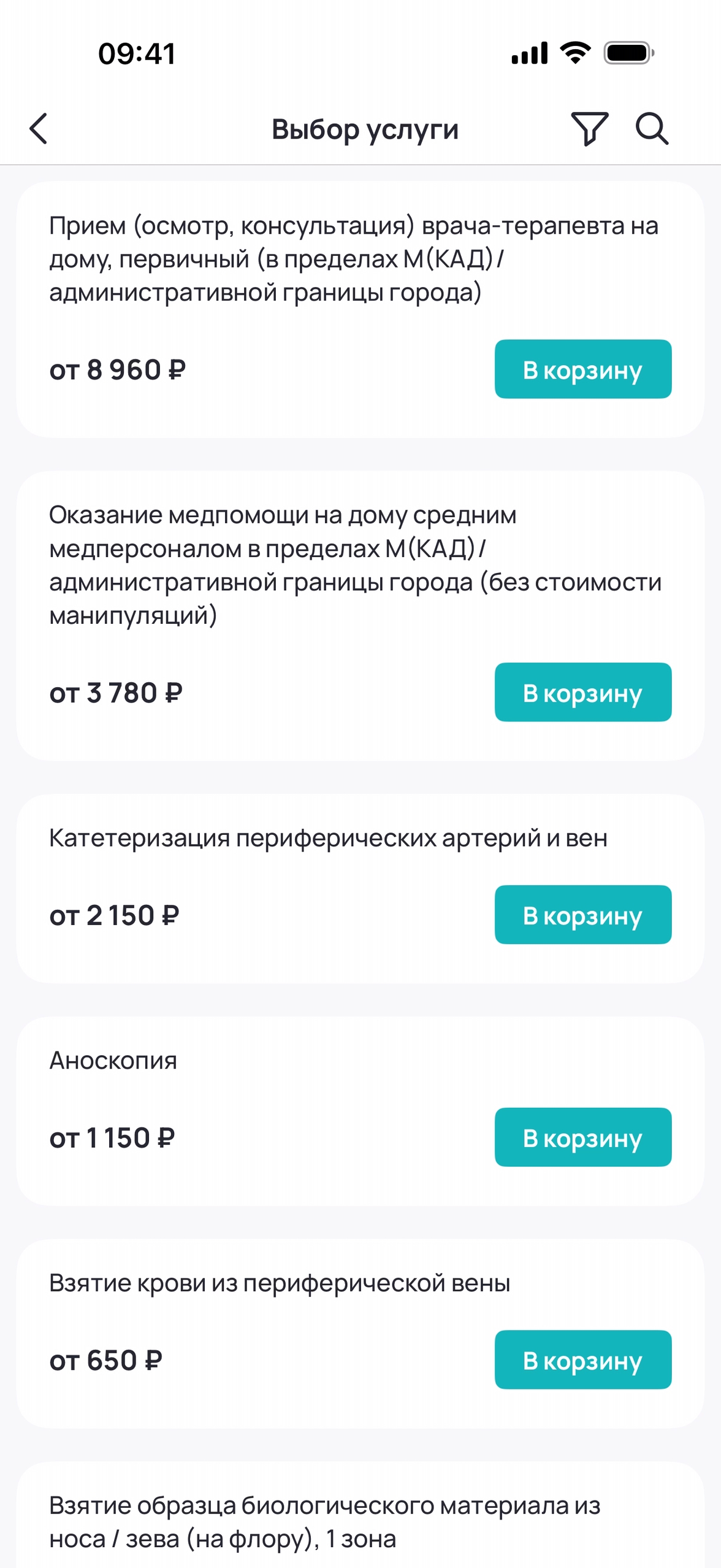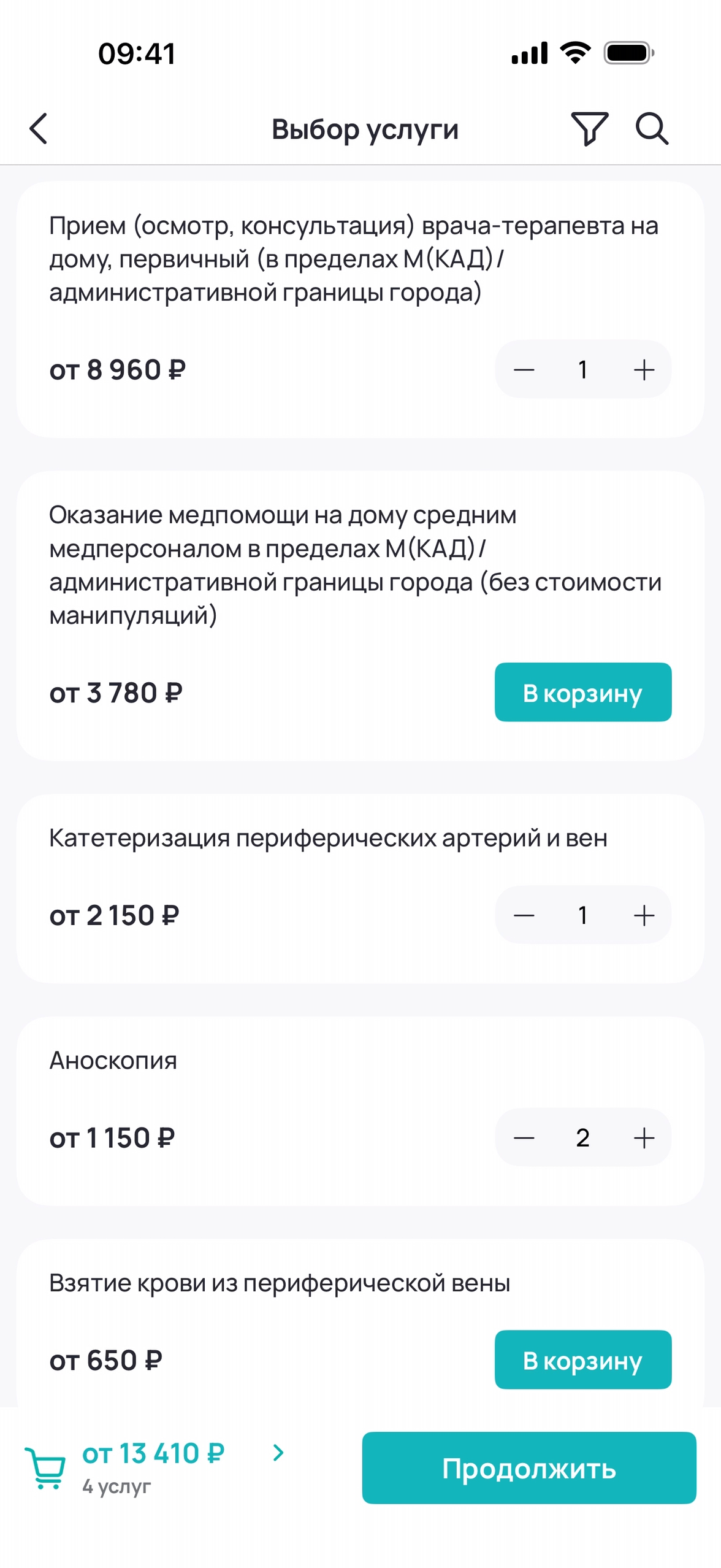 Добавление услуг в корзину