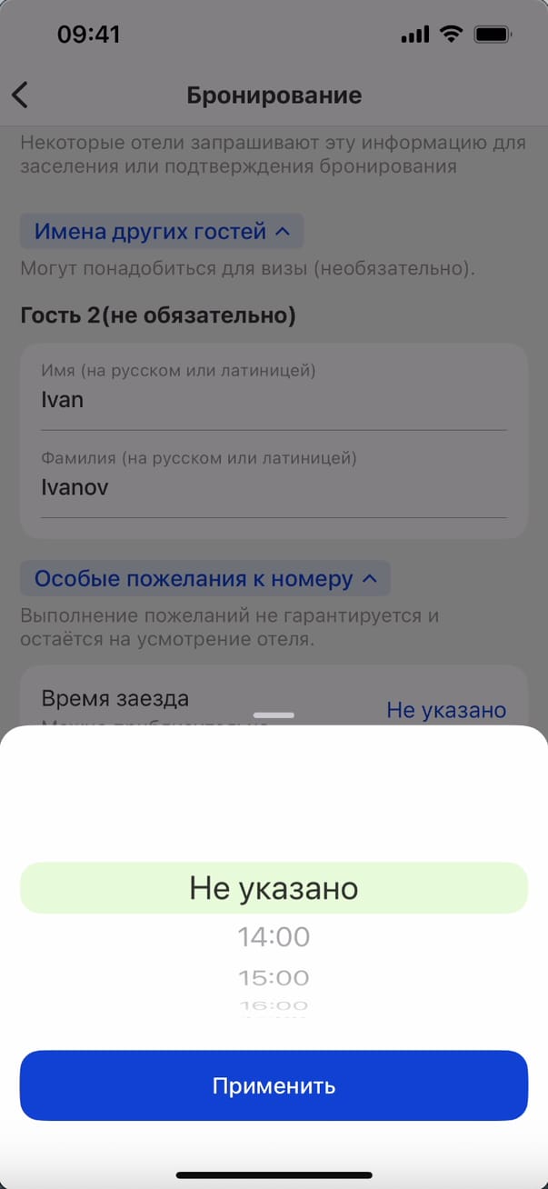 Выбор времени